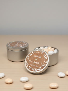 Je sélectionne le visuel qui correspond à mes préférences ou s'harmonise avec le thème de mon mariage, le baptême de mon enfant, communion, etc. Tous les designs de notre boutique s'adaptent à votre événement et à notre sélection de cadeaux d'invités.